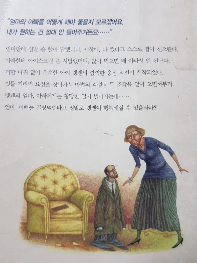 뭐든지 자기 마음대로 하고 싶어 하는 아이인데 아빠와 엄마는 못하게 하니 마음속으로 벌 주고 싶어해서 요정을 찾아간다.